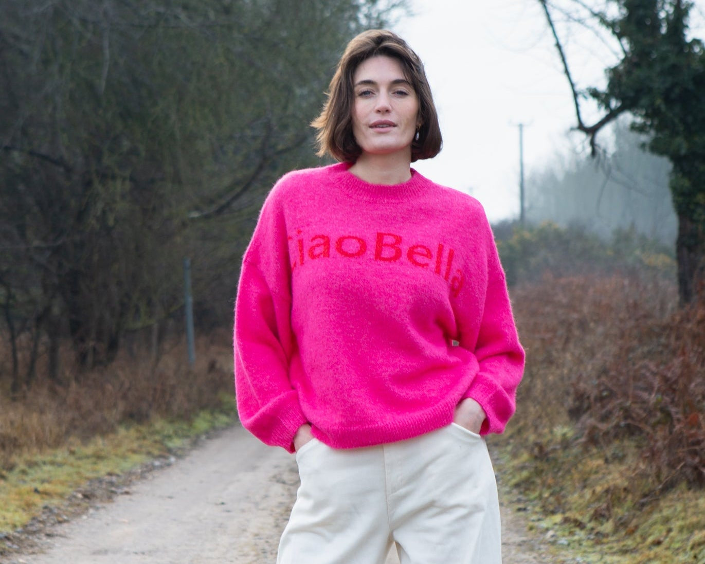 Add a touch of playful Italian charm to your spring collection with our Ciao Bella Statement Jumper. This eye-catching piece combines a cosy, oversized fit with a bold intarsia slogan, making it the perfect blend of fun and sophistication.