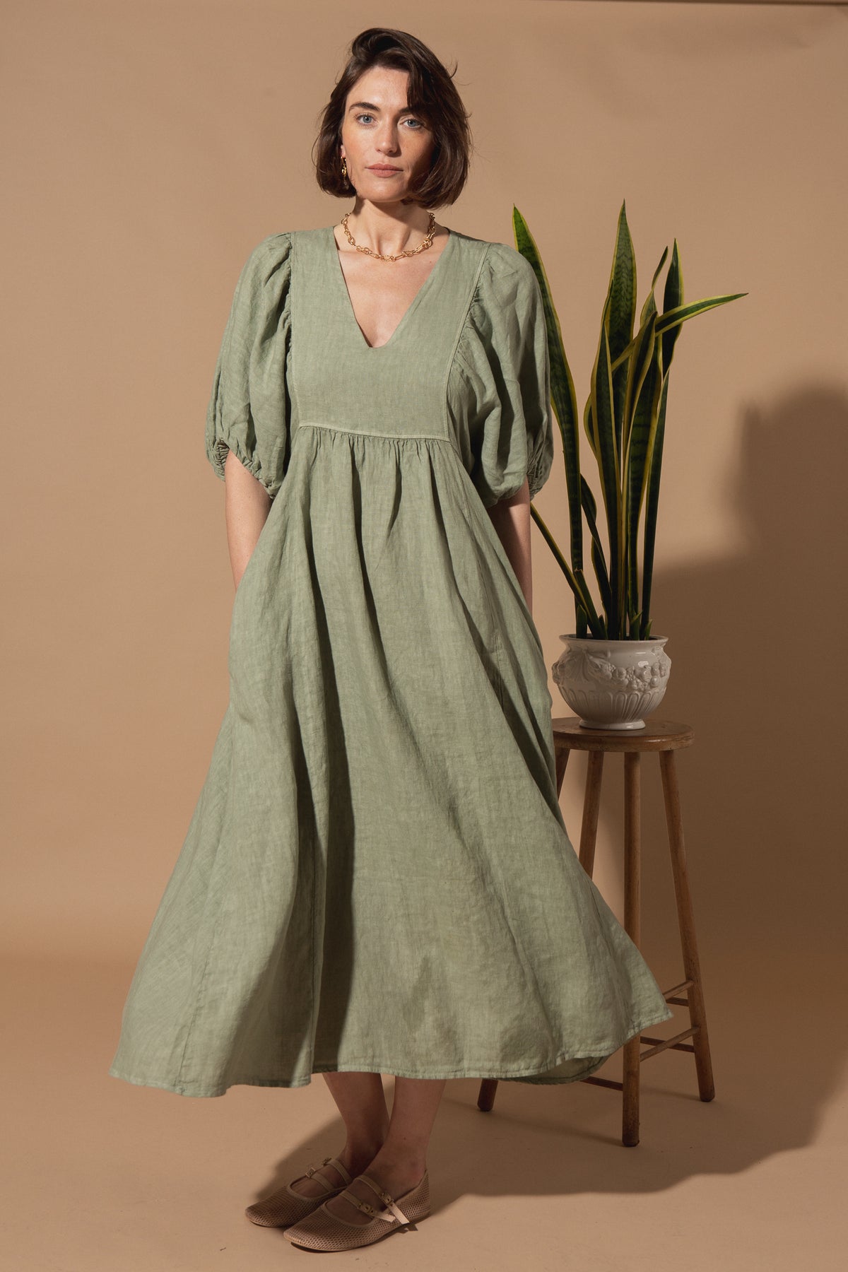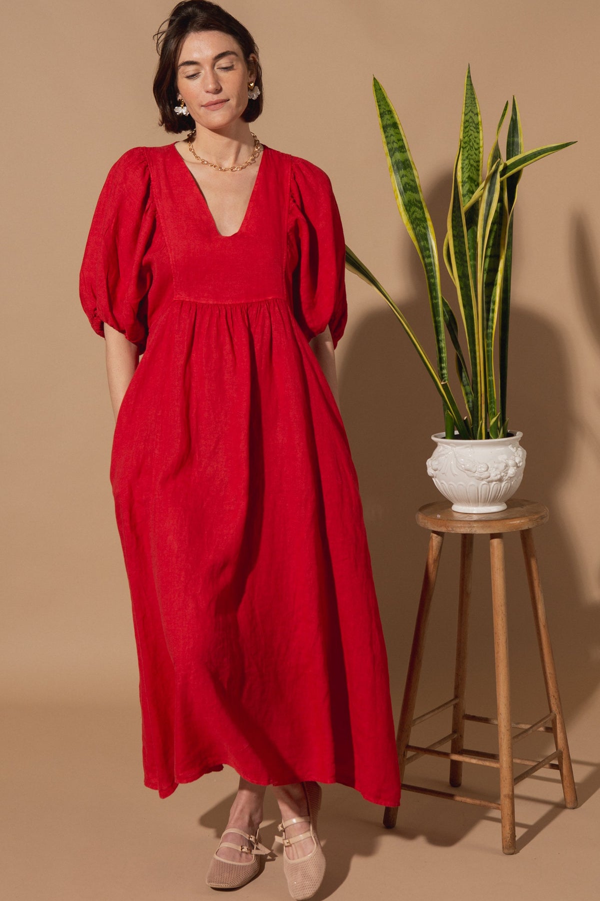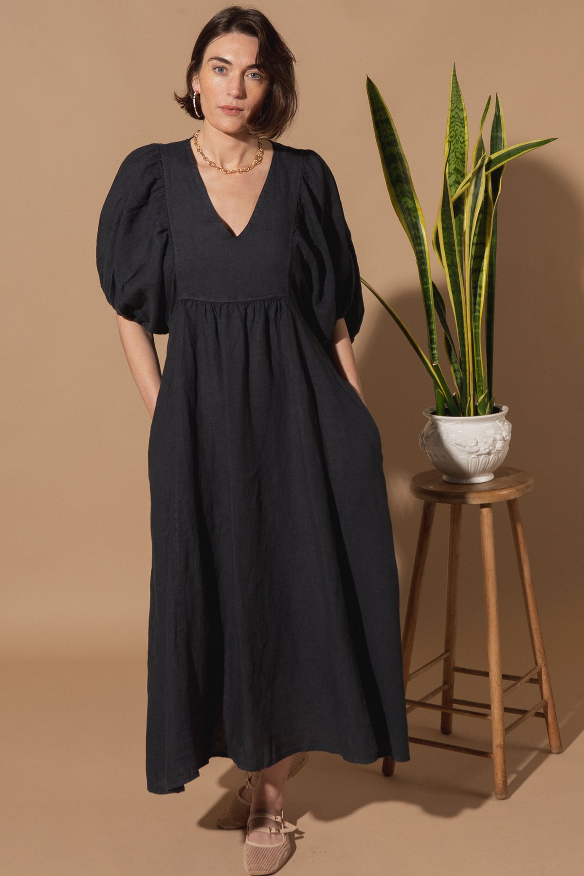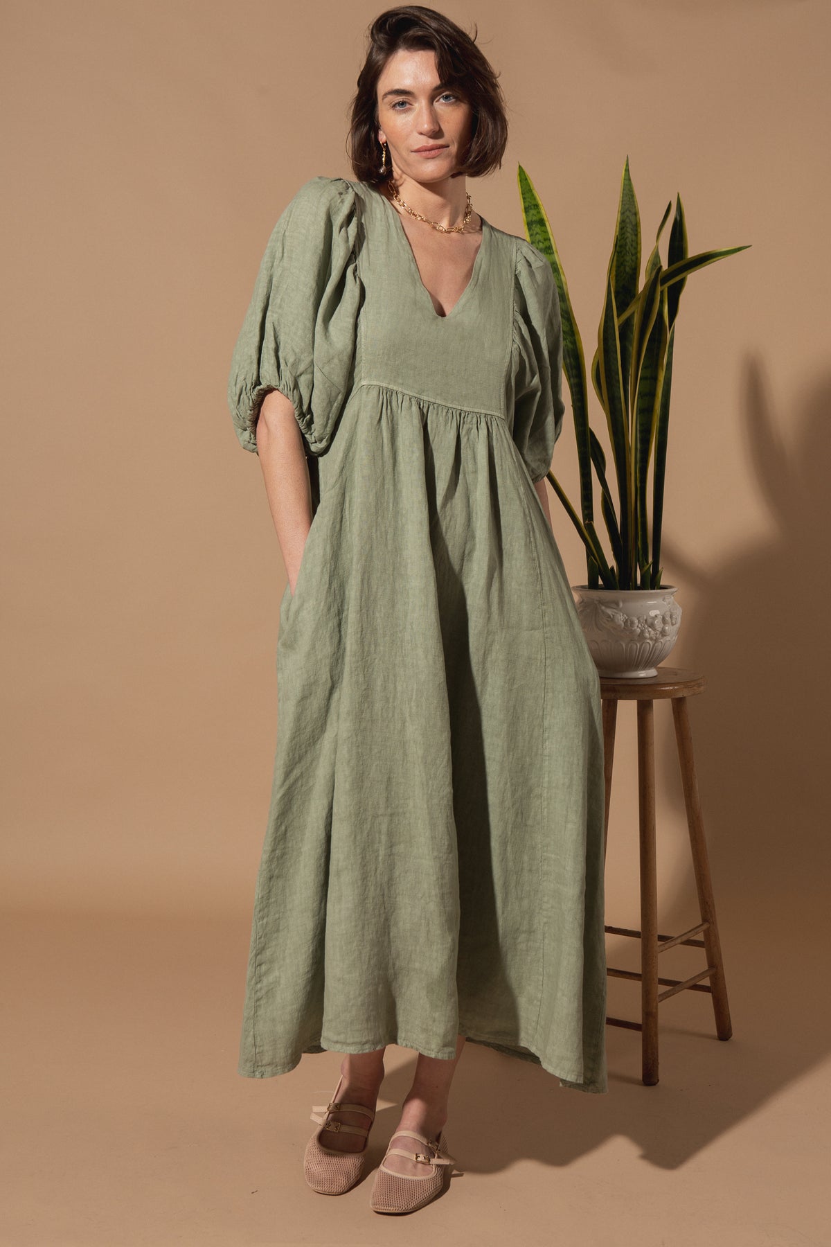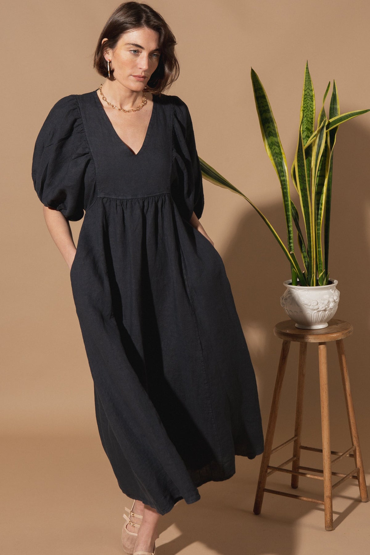 Livie Puff Sleeve Linen Dress